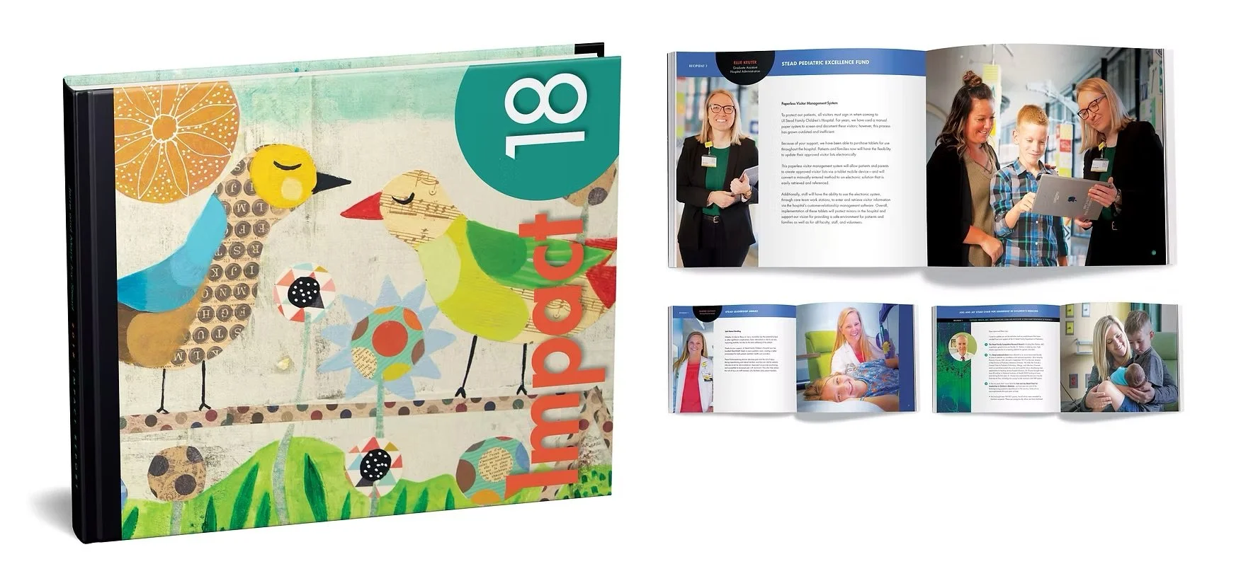 This personalized coffee table book was created for each transformational donor who named a space within the new University of Iowa Stead Family Children’s Hospital.