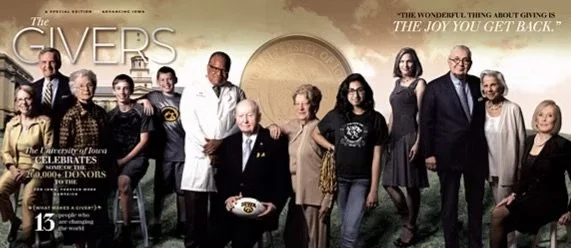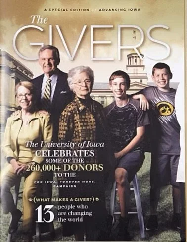 Designed in the sophisticated, narrative-rich style of the Hollywood Issue of Vanity Fair, Iowa’s special publication, The Givers blended journalistic storytelling with elegant design to honor and celebrate the extraordinary donors who fueled For Iowa. Forever More: The Campaign for the University of Iowa. With its lush photography, captivating profiles, and refined editorial tone, the piece offered readers an immersive look into the people and passions driving transformational change across the university.
